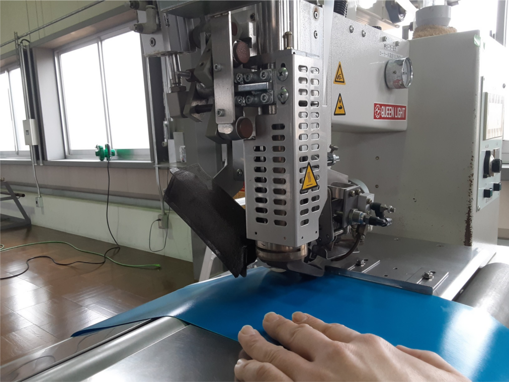 上面、底面、胴体を溶着してソフトタンクの形を作る。