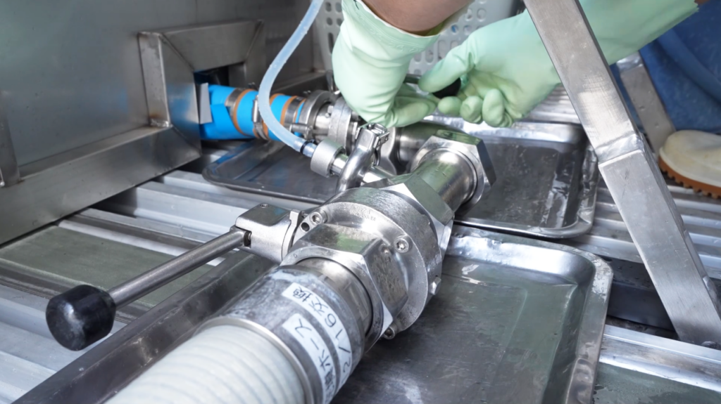 生乳、殺菌乳、脱脂濃縮乳、その他の液体を専用ホースでソフトタンクに密封状態で充填。